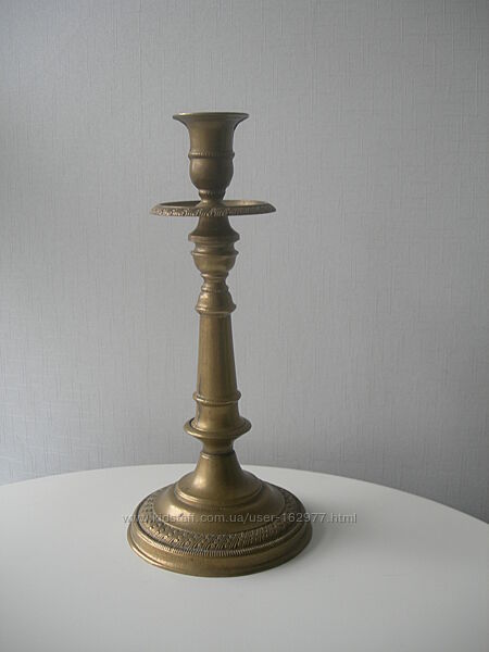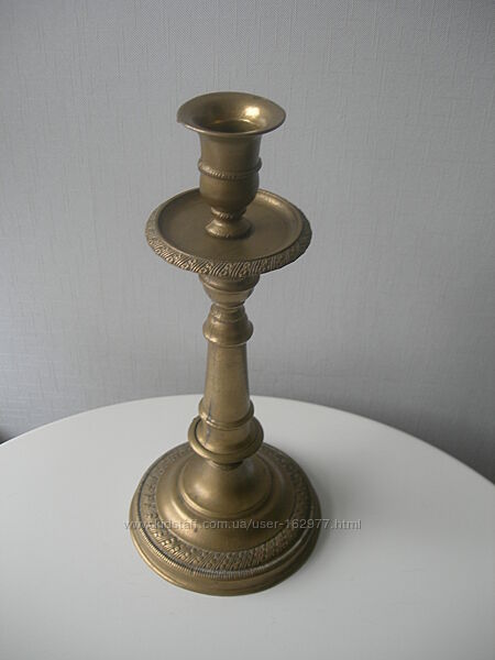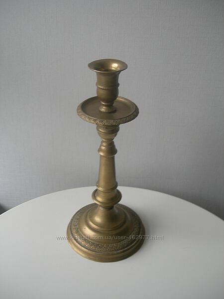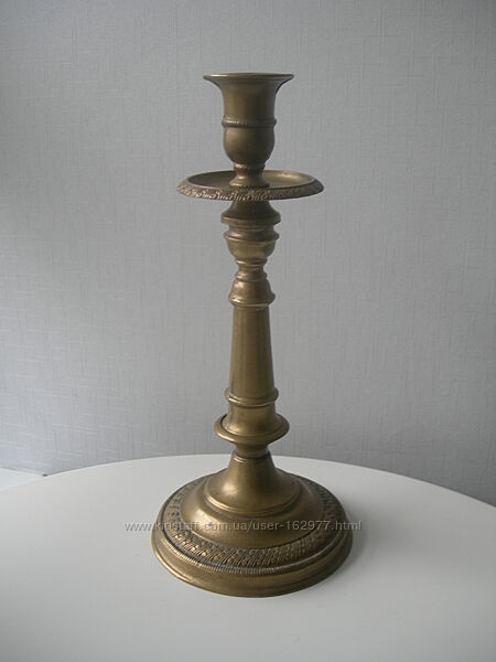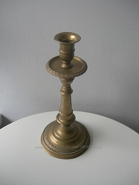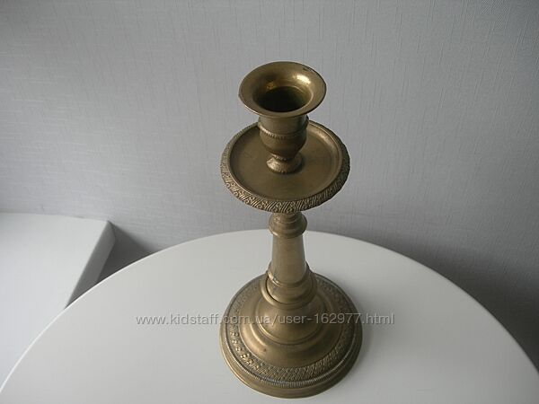 Старинный массивный подсвечник на 1 свечу, красивое высококачественное литье, с четким цветочным орнаментом на нижней части и юбочке.