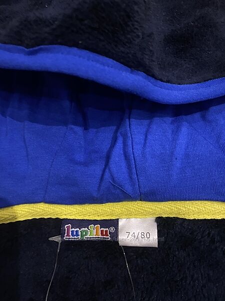Тепла м’яка кофтинка ф. Lupilu. Вказано розмір 74/80 см. Довжина від плеча до низу - 35 см, плечі від шва до шва - 25 см, рукав від плечового шва - 28,5 см.