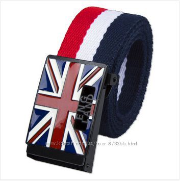 Модный ремень бежевого, коричневого, синего, серого, красного, темно-зеленого и черного цвета изготовлен из прочной и эластичной ткани. Застежка на ремне металлическая, черного цвета. Применяется специальный зажимной механизм на пряжке, что очень удобно. Благодаря этому ты сможешь застегнуть ремень на любом участке длины, которая тебе нужна. Ширина ремня - 3,8 см, что именно является оптимальной для ношения. Длина ремня - 110 сантиметров является очень практичной и подойдет для любой фигуры. Очень удобно для ежедневного ношения. Ремень прекрасно подойдет для джинсов и брюк. Удобный и стильный ремень послужит для тебя как стильный аксессуар и будет прекрасным дополнением к твоему имиджу. Удобно себя чувствуй и модно выгляди!Модный ремень в красную, белую и темно-синюю полоску. Ремень изготовлен из прочной и эластичной ткани. Застежка на ремне металлическая с изображением английского флага и надписью England. Применяется специальный зажимной механизм на пряжке, что очень удобно. Благодаря этому ты сможешь застегнуть ремень на любом участке длины, которая тебе нужна. Ширина ремня - 3,8 см, что именно является оптимальной для ношения. Длина ремня - 110 сантиметров является очень практичной и подойдет для любой фигуры. Очень удобно для ежедневного ношения. Ремень прекрасно подойдет для джинсов и брюк. Удобный и стильный ремень послужит для тебя как стильный аксессуар и будет прекрасным дополнением к твоему имиджу. Удобно себя чувствуй и модно выгляди!