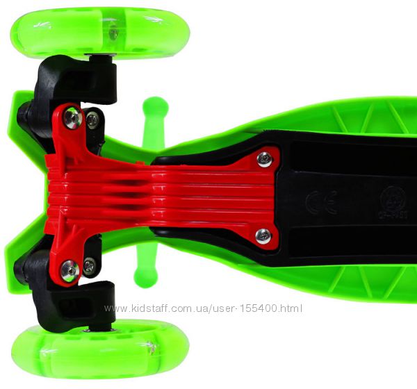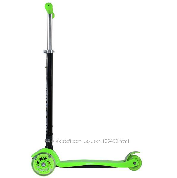 Самокат c T-образной ручкой - легкий в управлении, маневренный, устойчивый. Он позволит ребенку с радостью наслаждаться быстрой ездой.Мягкие полиуретановые колеса при катании мерцают разноцветными огоньками.