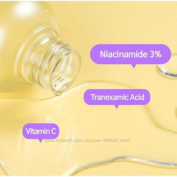 Формула містить запатентований комплекс Brightening Synergy Complex, що включає Транексамову кислоту і Вітамін С (Етиласкорбінова кислота, Вітамін С, що міститься у Винограді).