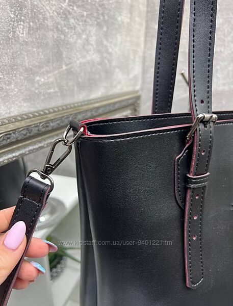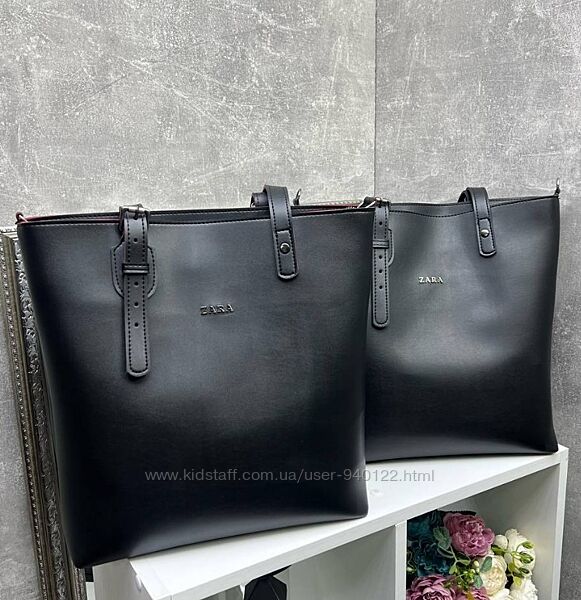 жіноча сумка чорна з червоним модна зара містка сумка через плече жіночасумка шоппер Екошкіра .