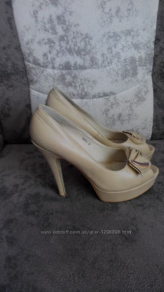Туфельки с открытым носком. Состояние хорошее, размер 39. Сделанные из кожзама бежевого цвета. Каблук 13,5 см, платформа 4 см.Другие объявления продавца