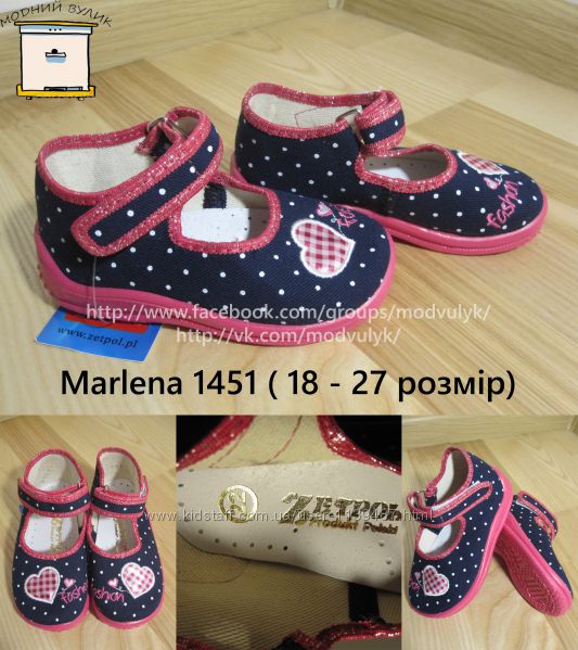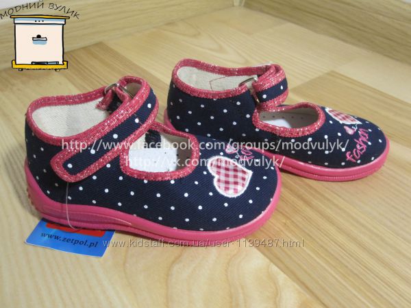 Дуже красиве, практичне й зручне текстильне взуття польської фірми Zetpol, яке відмінно підходять для садка, школи, будинку і вулиці. Матеріал верху і підкладка – текстиль. Гнучка неслизька підошва. Знімна шкіряна профілактична устілка з супінатором (не у всіх моделях, видно на фото). Фірма ZETPOL використовує конструкційні рішення, відповідні анатомічним вимогам дитячої ніжки і технічним параметрам "Здорова Стопа". Дитяче взуття забезпечує правильний розвиток і функціонування дитячої стопи, а модний дизайн і колірна гамма приносять радість від щоденної експлуатації. Профілактичні устілки для взуття Zetpol представляють собою важливий інструмент, що забезпечує у здорової дитини надійну фіксацію стопи і запобігає її викривлення в сторону, тим самим попереджаючи можливі травми.Дитяче взуття зроблене в Польщі.