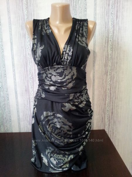 Размер наш 44-46, замеры: длина 85 см, ПОГ 42 см ( ОГ до 90 см ), ПОТ 35 см, ПОБ 42 см. Ткань, состав: 92% полиэстер, 8% эластан; подкладка: 100% полиэстер, плотная, приятная на ощупь, хорошо тянется и отличнейше ложится по фигурке. Бренд - Jane Norman, made in UK. Спрашивайте, пожалуйста, платье действительно классное! Новое! Цена 185 грн.