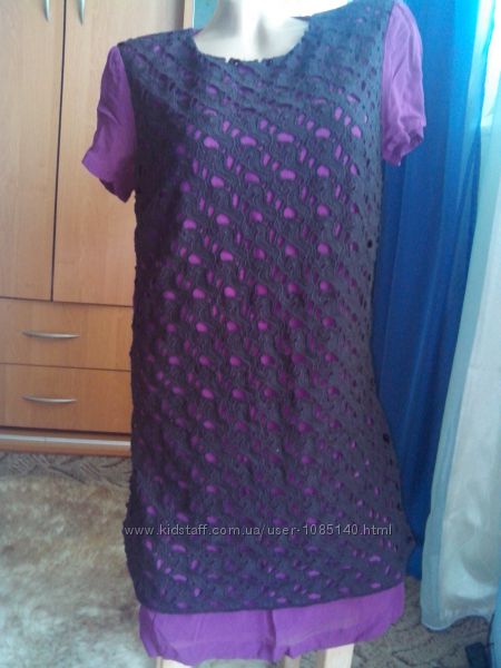 Размер указан 10\38\6, наш 46-48, замеры: длина 85 см, плечи 40 см, ПОГ 48 см ( + есть вытачки, ОГ до 102 см ), ПОТ 45 см, ПОБ 50 см, рукавчик сверху 18 см. Ткань, состав: кружево 100% полиэстер, верх 100% вискоза, подкладка 100% полиэстер. Бренд - French connection. Спрашивайте, пожалуйста, красивое, стильное платье и отлично скрывает недостатки;-)... Цена 165 грн.