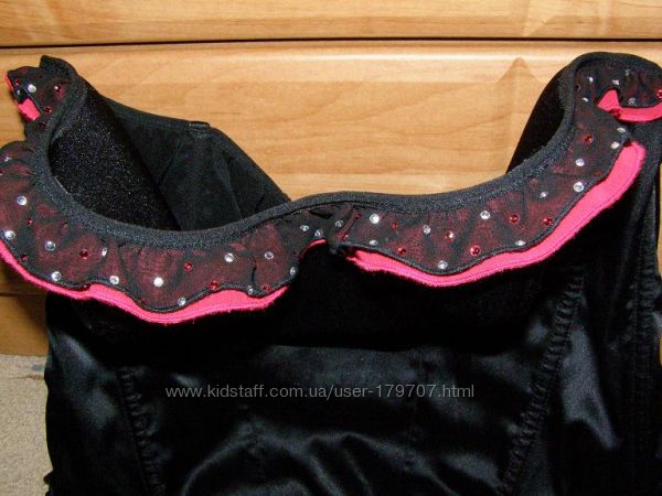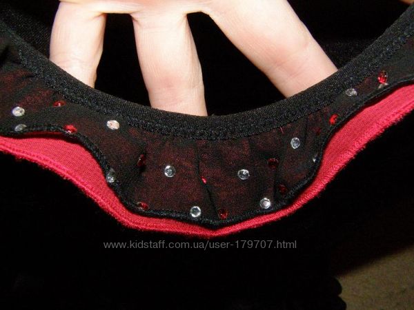 Цвет черный, спереди две шифоновые рюшки: красного и черного цвета.