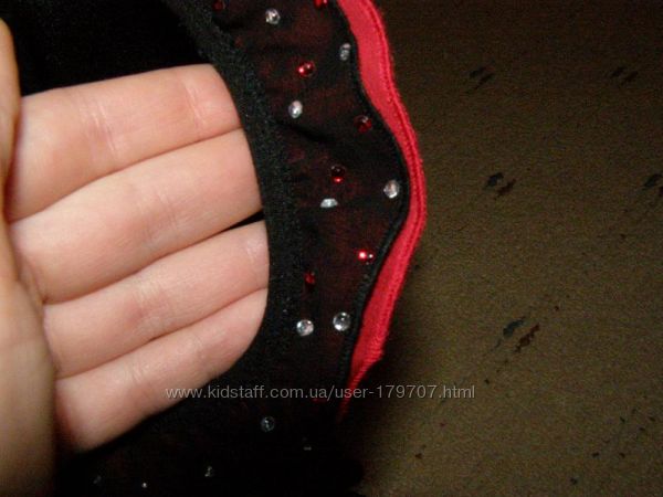 Красивые мерцающие стразы усыпают рюшики, стразы белого и красного цвета.