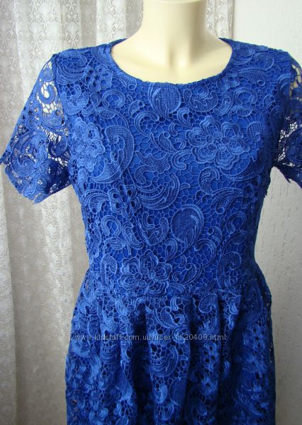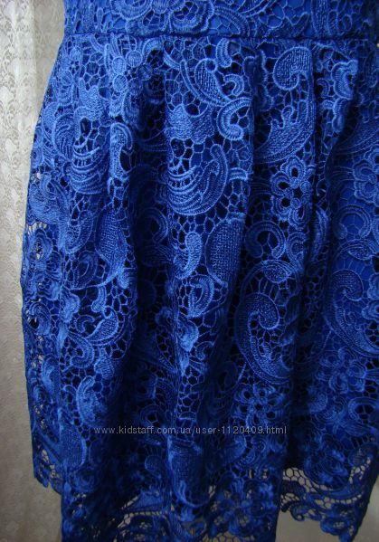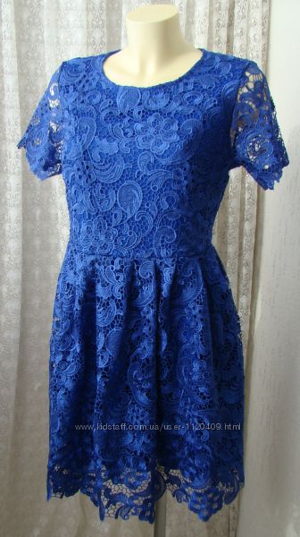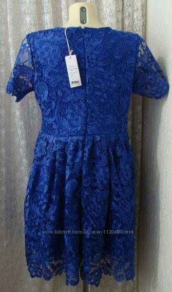 Платье в очень хорошем, отличном состоянии, не носилось, сток c этикеткой. Недостатков не нахожу. Состав полиэстер 100%, красивый кружевной гипюровый верх и эластичная подкладка, платье красивого благородного синего цвета, очень красивое.Размер производителем написан L, но смотрите и по мерочкам