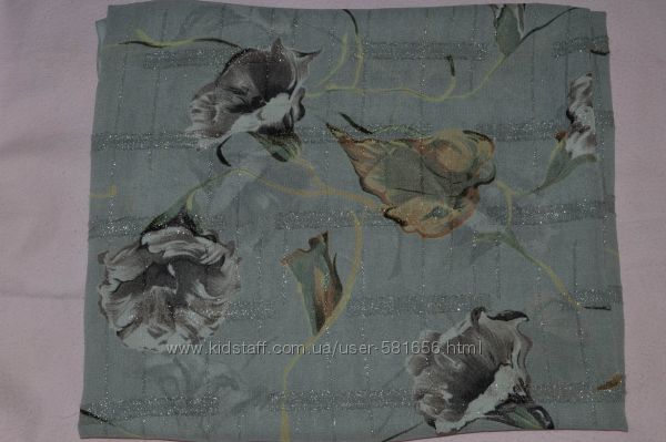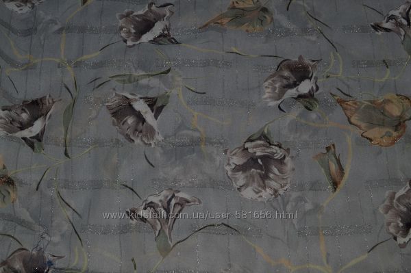 Продам:1) отрез легкой шелковистой ткани серо-голубого цвета с цветами.
