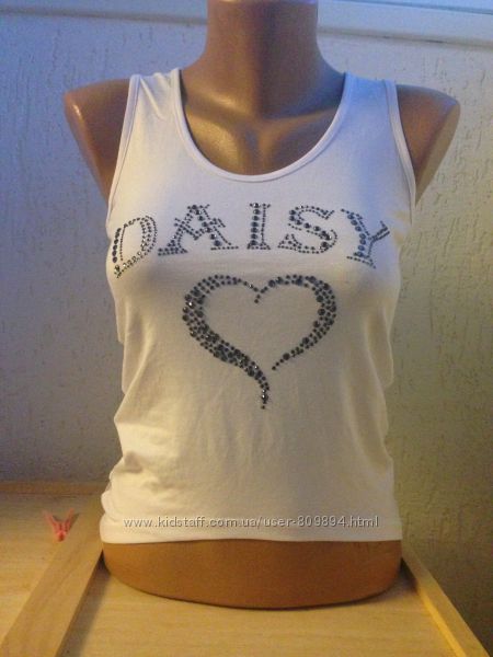 молодежная маечка Crazy Daisy ,есть размеры С-М. надпись в стразах,спина удлененная-кружево.Другие объявления продавца