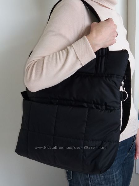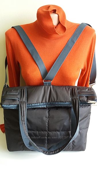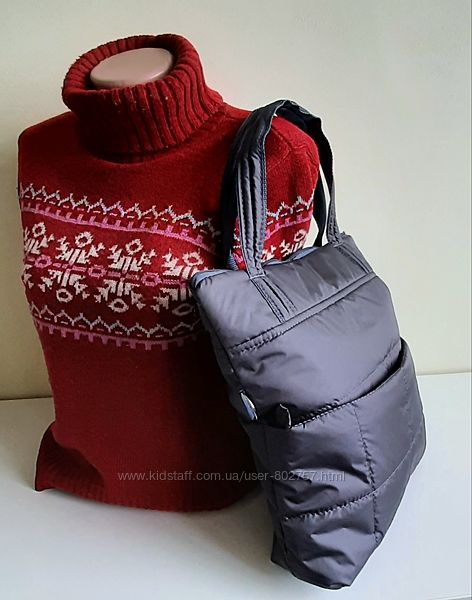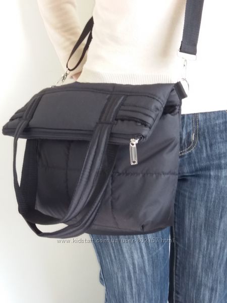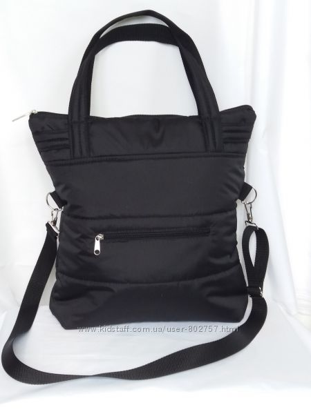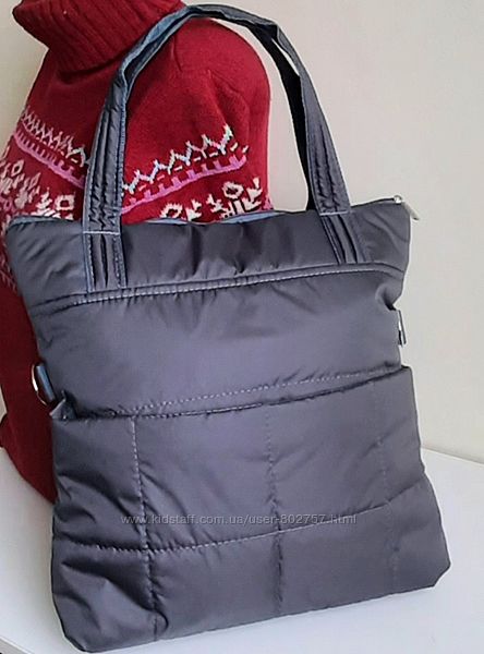 Легка зручна сумка з кишенями.Водовідштовхуюча курточна тканина плюс синтепон плюс підклад болонья.Можна носити .на плечі,через плече,,в руках,як рюкзак.