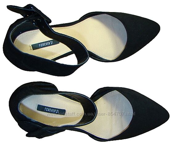 Босоножки женские замшевые черные на каблуке Forever 21 (размер 40, UK7)Изготовлены из качественной искусственной замши.