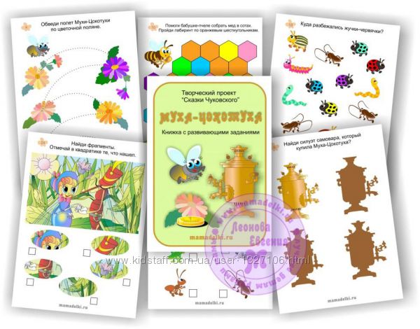Тематические комплекты игр и заданий по сказкам Чуковского для деток с 9 месяцев до 7 лет в электронном видеМуха-Цокотуха
