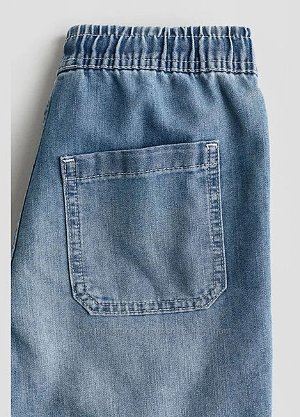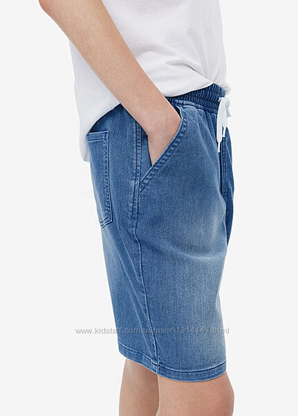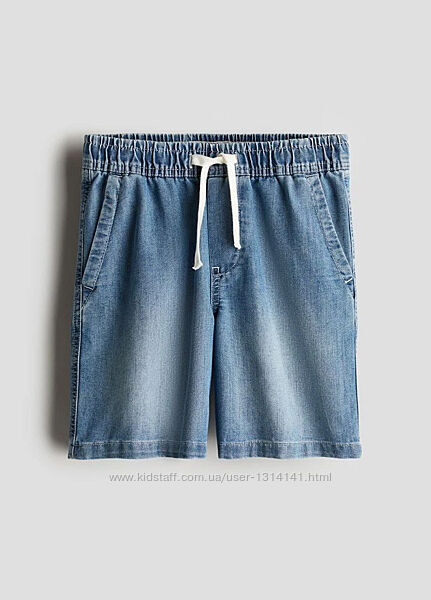 Шорти без застібки з м´якого еластичного деніму. Еластичний пояс на кулісці, діагональні бічні кишені, одна задня кишеня.
