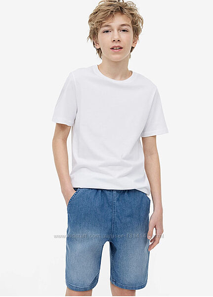 ф.1-Мкланжеві Шорти H&M 152, 158Шорти зі суміші бавовни з принтом на одній штанині. Пояс в рубчик, еластичний шнурок, діагональні бічні кишені та задня кишеня. Вшиті відкидні манжети.