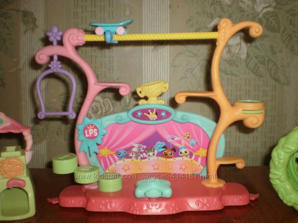игровая площадка для фигурок зверюшек Пет Шоп фото 2 цирковая площадка с призовыми местами, полочки для зверюшек подвижны оригинал от Хасбро длина 25 см высота 22 см - 280 грн, фото 3 кормушка длинна 11 см высота 12 см - 120 грн,фото 4 колесо для хомячков окружность 33 см - 80 грн