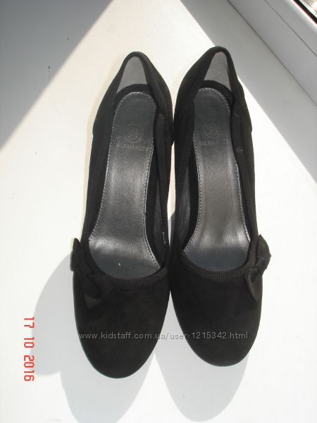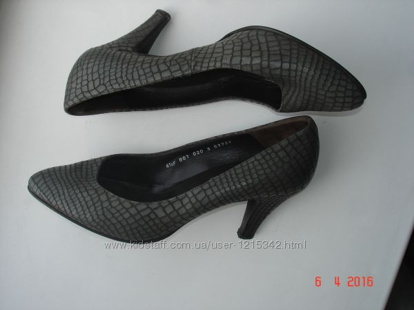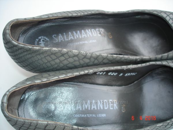 Фирменные туфли Salamander, в идеальном состоянии (см. фото), из натуральной кожи змеи, серого цвета.Полная длина стельки -25, 5 см для узкой ножки, 25 см для широкой ножки, каблук - 8,5 см. Обувь этой марки, гарантия качества и комфорта. Мягкая стелечка (и под пальчиками тоже), обеспечит Вашим ножкам удобство и красоту.В новом, безупречном состоянии (см. фото), фирменные саламандровские туфельки на наборном каблучке 8 см. Чёрный замш, элегантный бантик, фигурная форма верха, -беспроигрышный вариант для выхода и на каждый день. Cочетают в себе немецкое качество и комфорт.Указан 37 размер, полная длина стельки 25 см, но подойдут на 24 см, за счёт носка. -460 грн.