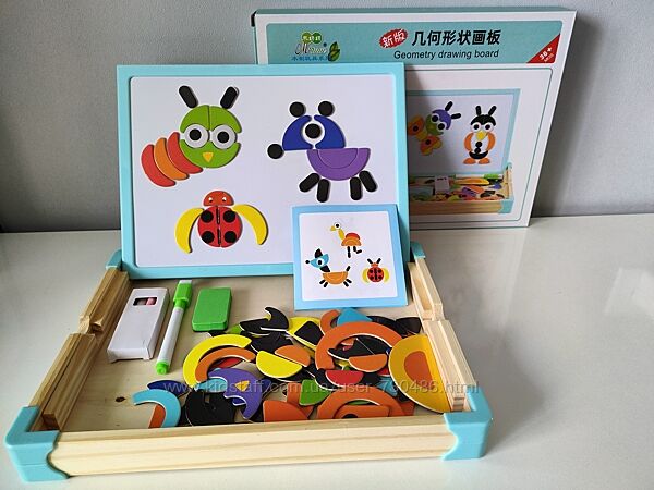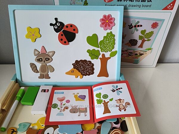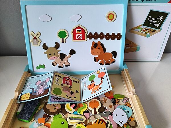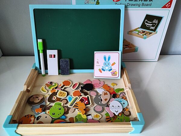 Подробное описание: Деревянная двусторонняя доска магнитная для мела Животные, Ферма, Насекомые