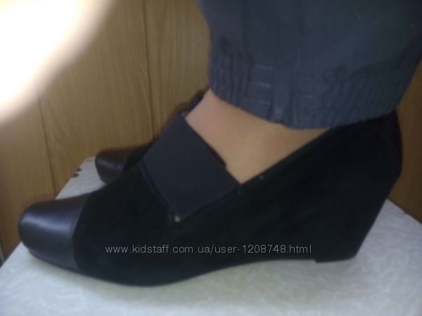 Туфли на танкетке комбинированные из натуральной замши и натуральной кожи б/у в отличном состоянии.Размер написан 40,Длина по стельке 25 см.