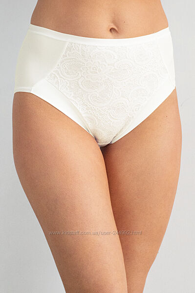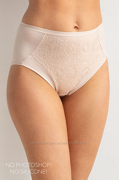 Бюстгальтер с боковыми корректирующими деталями, переходящие в широкие бретели с мягкими прокладками, которые снимают напряжение в области плеч. Выполнен из неэластичного кружевного полотна и трикотажного полотна (на чашках), и упругого эластичного полотна (на боковых деталях). Бюст на каркасах.