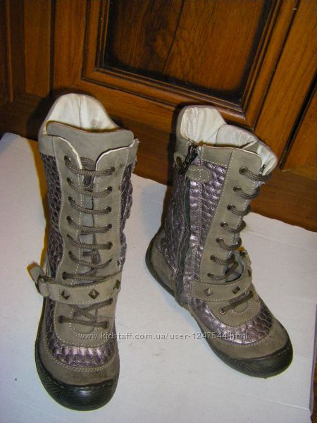 ф. 4-5 Свекольного цвета термосапожки Ricosta со звездочками , в очень хорошем состоянии. Верх кожа и непромокаемая плащевка. Мембрана Симпатекс. Войлочная теплая стелька. Можно носить зимой. По стельке 19 см, размер 29 - 80 грн