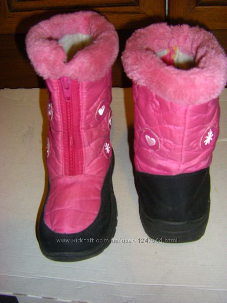 ф.8-9 РОЗОВЫЕ в сердечки теплые сапожки на меху, непромокаемая ткань верха, р.29, стелька 19 см - 220 грн