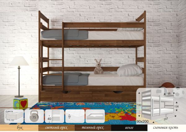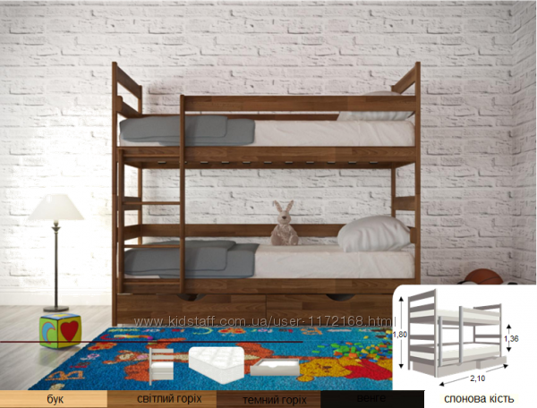 Дитячі ліжка, Ліжко Двоярусне ЯснеВиготовлена з дотриманням чотирьох основних параметрів для дитячих ліжок: