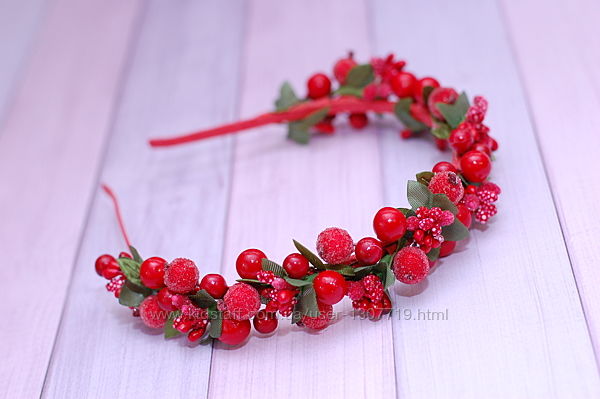 Ободок с ягодами красной сахарной калины. Ручная работа, возможно изготовление в другом цвете. Ободочек сделан очень аккуратно.Ободок с ягодами калины прекрасно дополнит Ваш образ. Гармонично смотрится и с традиционной вышиванкой, и с вечерним платьем.