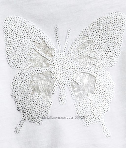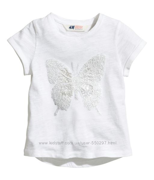 Красивая футболка для девочки из органического хлопка. Бренд: H&M.Мягкий, приятный к телу, трикотаж, с коротки рукавом-фонарик, горловина обработана эластичным кантом-резинкой.