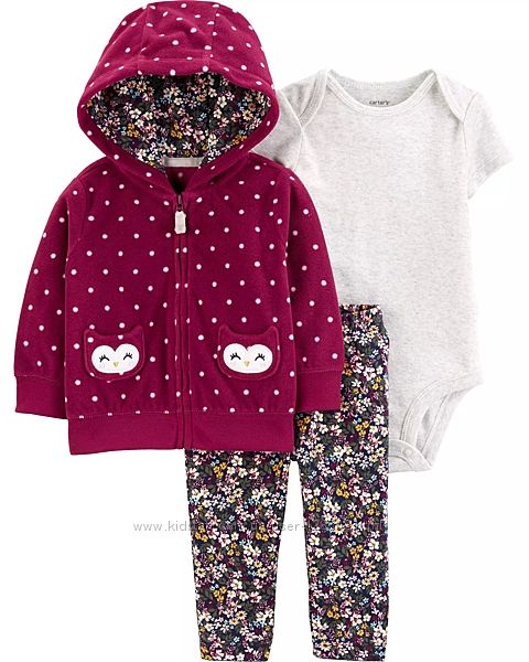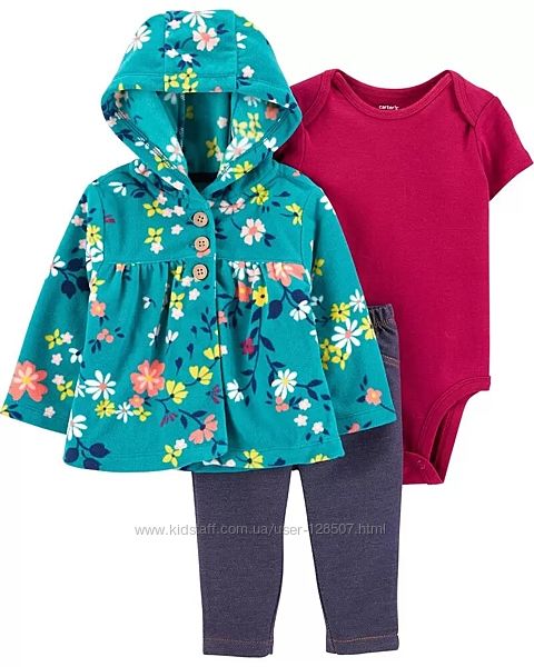 Яскраві та красиві флісові комплекти Carters для дівчаток. У комплект входить флісова кофта, хб бодік та штани.В наявності