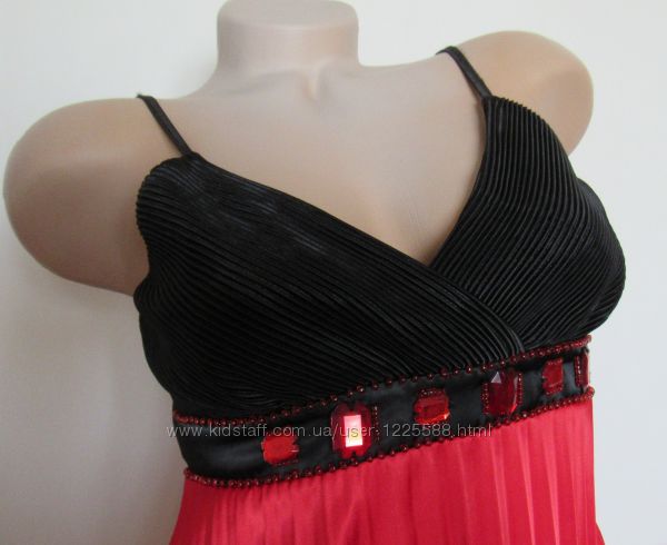 Сукня для будь-якого свята в стилі ампір. Розмір 36-38 або S-M Шикарний високоякісний матеріал - плісирований атлас + підкладка. Застібається на бічну потаємну блискавку. Довжина шлейок регулюється. Під грудьми розшита камінчиками. Вдягалась 1 раз. Стан нової речі Заміри: Довжина від плеча - 85 Об´єм під грудьми - 75