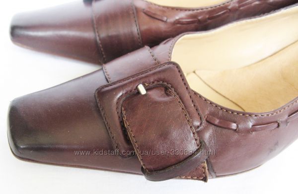 147. Кожаные туфли немецкого бренда "Zanon & Zago" в отличнейшем состоянии. Судя по каблуку, набойкам и абсолютно чистой стельке, может были раз надеты.Материал верха - натуральная мягчайшая кожа коричневого цвета. Декорированы кожаным ремешком с обтянотой кожей пряжкой