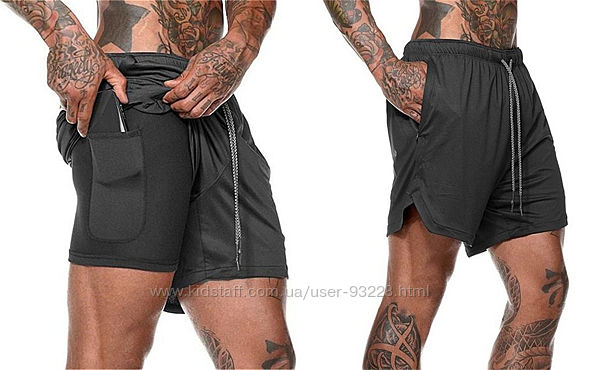 Спортивные шорты 2 в 1, с тайтсами и скрытым карманом для телефона 6 цветов