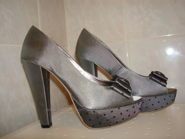 Красивые, нарядные, атласные туфли на высоком каблуке