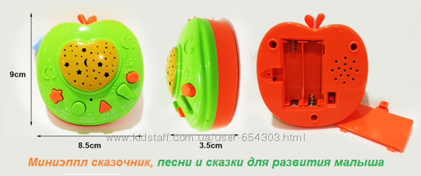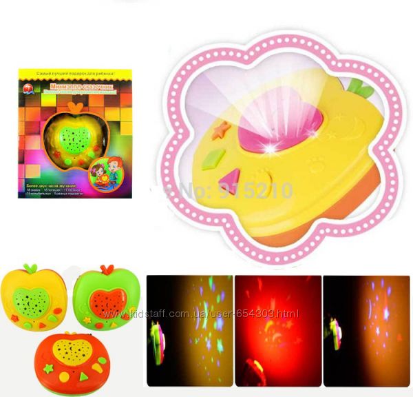9 сказок, 1 0 потешек, 1 0 песенок, 6 колыбельных и 5 разных подсветок (проектор). Эта игрушка служит также как и ночник. Е сть 5 режимов ночника, которые могут быть включены одновременно со сказками или песенками.