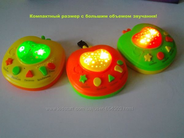 9 сказок, 1 0 потешек, 1 0 песенок, 6 колыбельных и 5 разных подсветок (проектор). Эта игрушка служит также как и ночник. Е сть 5 режимов ночника, которые могут быть включены одновременно со сказками или песенками.