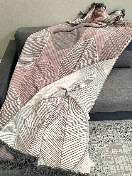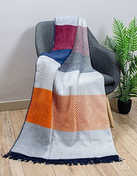 Хлопковые, двухсторонние пледы с бахромой 180х220 Aksu