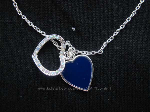 Длина цепочки 45 см, подвеска в виде двойного сердечка.