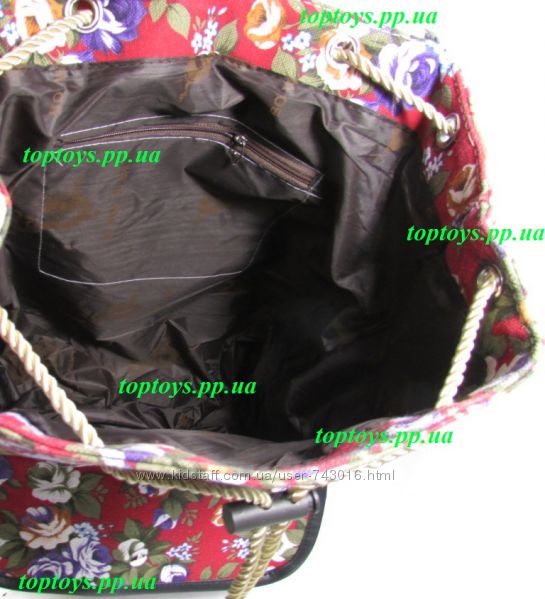 - 1 большое основное отделение, затягивается шнурком и закрывается клапаном на магните.