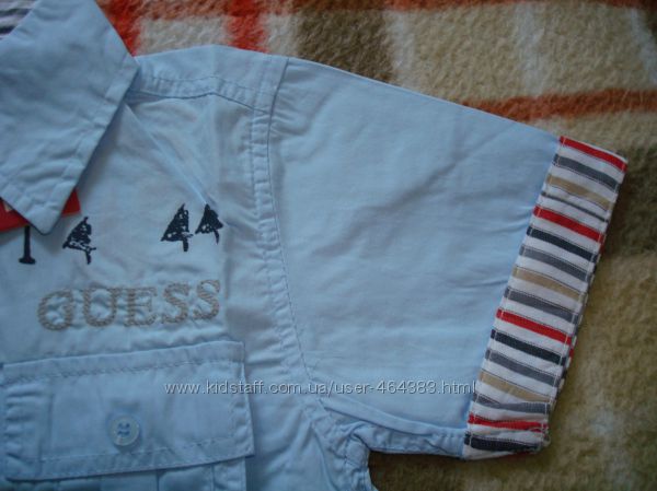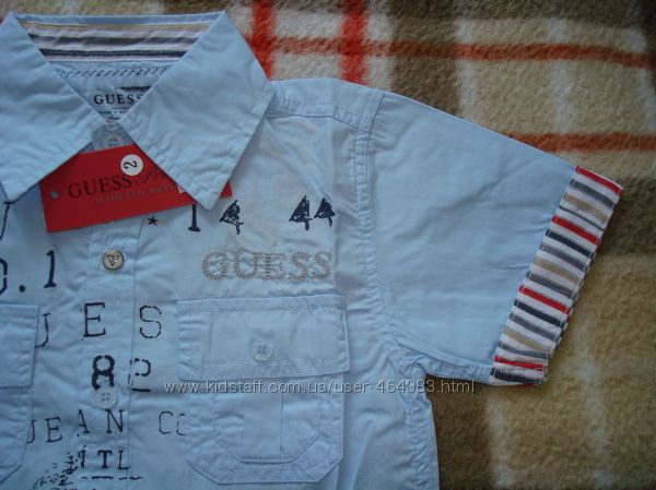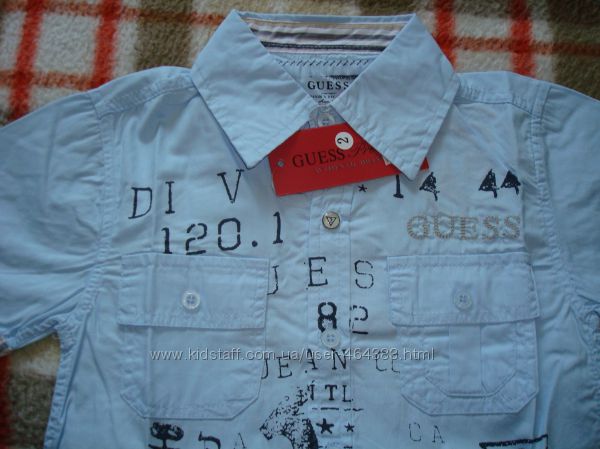 Описание: Тенниска пошита из высококачественного х/б материала в состав которого входит 100% хлопок.Тенниска относится к спортивному типу и пошита по принципу свободного кроя или Custom-Fit c широким воротником.На лицевой стороне тенниски нашиты два нагрудных кармана,над левым карманом размещена вышивка в виде логотипа компании GUESS,тенниска застёгиваться на 4 пуговицы и одну кнопку.На спине есть нашивка в виде английской буквы "G".