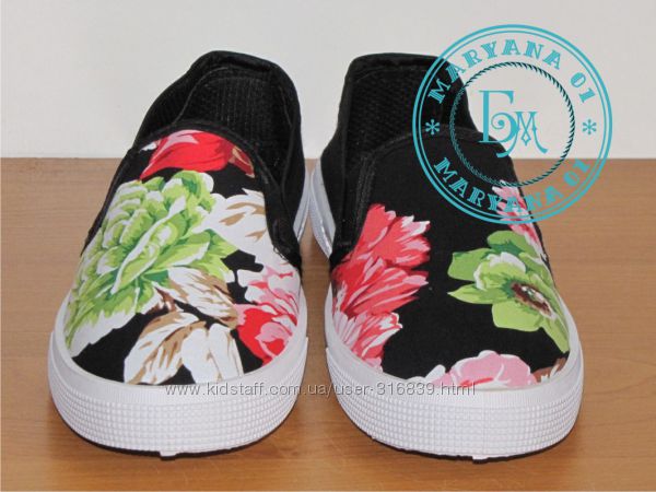 Верх - плотный котоновый материал. Прочный, хорошо чистится. Высокая подошва. Слипоны очень мягкие и удобные. Отличное качество.