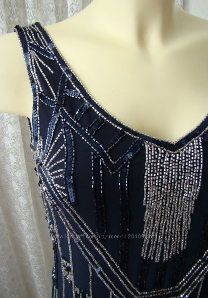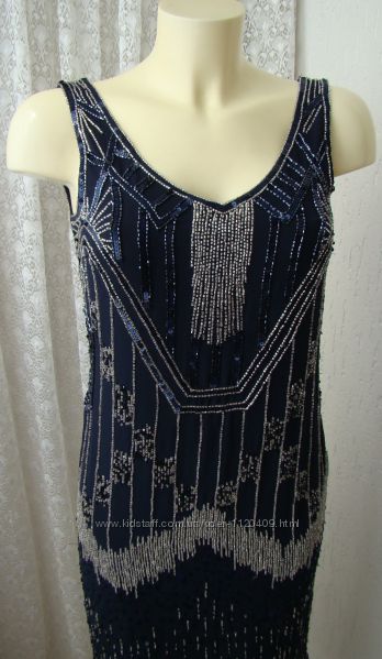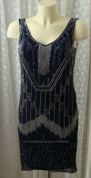 Платье в очень хорошем, отличном состоянии, не носилось, сток без этикетки. Кроме незначительной потери бисера, недостатков не нахожу. Состав полиэстер и верх и стрейчевая подкладкаРазмер производителем написан UK 8, но смотрите и по мерочкам
