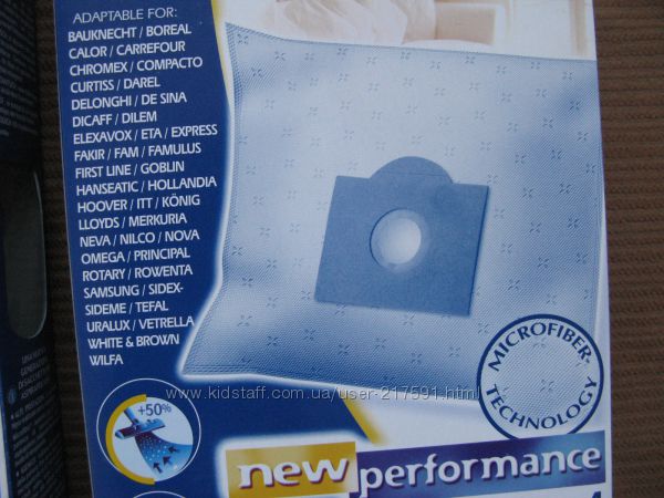 - высокие эксплуатационные характеристики:специальная "Микрофибровая технология" такого мешка позволяет увеличивать втягивающую силу пылесоса на 50%