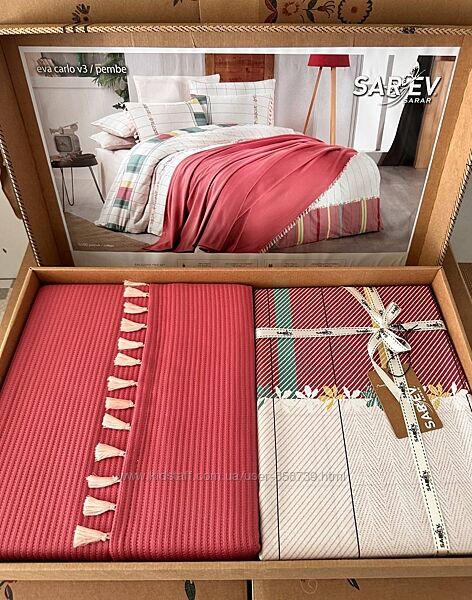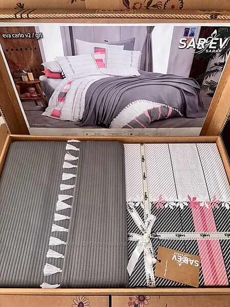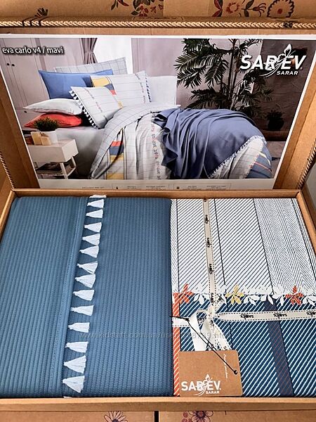 Акция SAREV -Комплект Постельного белья с Покрывалом-Пике Евро Размер- Eva