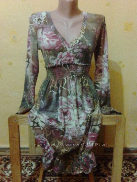 Размер указан S, наш 44-46, замеры: длина 88 см, плечи 38 см, ПОГ 38-50 см ( в спок. состоянии и в натяжении ), ПОТ ( резинка ) 25-50 см, ПОБ свободно, рукав сверху 62 см, снизу 50 см. Ткань - тонкий нежный тёпленький трикотаж, отлично тянется и безумно приятный, нежный к телу. Бренд - Zean. Спрашивайте, пожалуйста, отличное платье на весну-осень;-)... Цена 165 грн.
