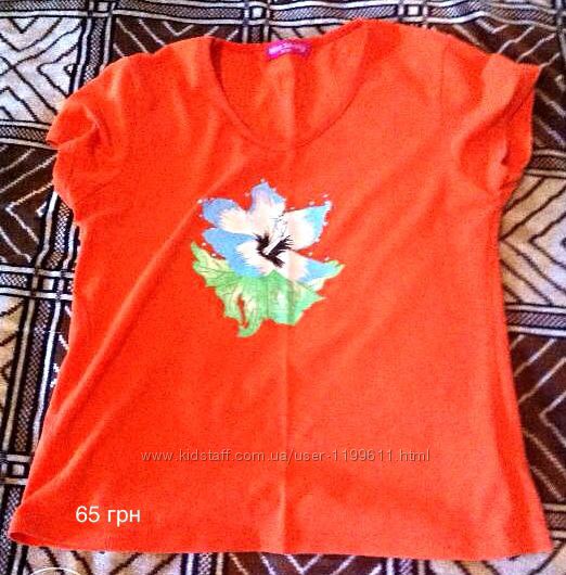 7) Футболка оранжевая с цветком Miss Shilly Размер S-M. Замеры: Длинна-50 см Ширина-40 см Плечи-30 см