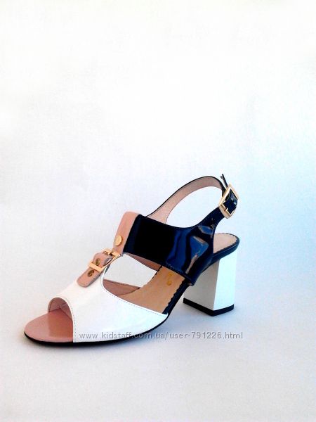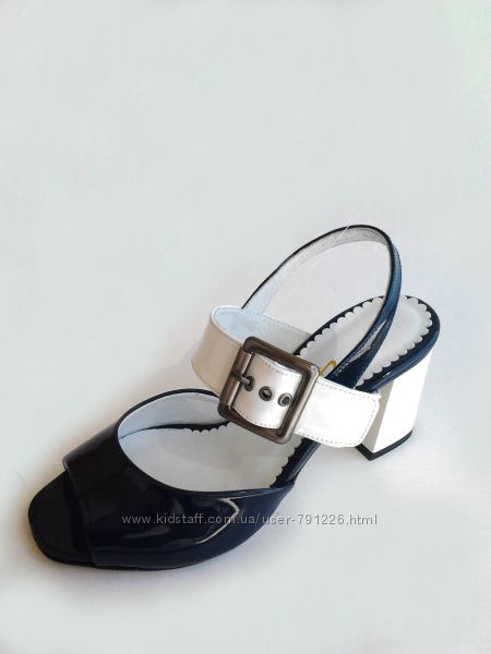 Босоножки натуральная кожа , в цветовой комбинации темно синий лак + белая натуральная