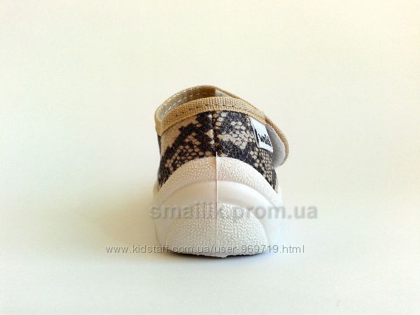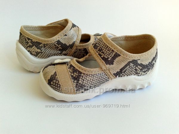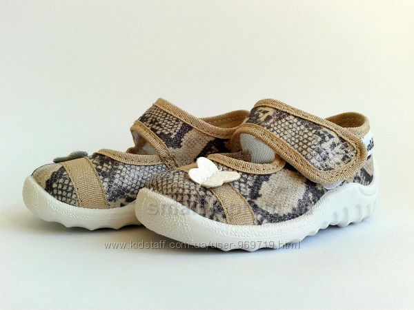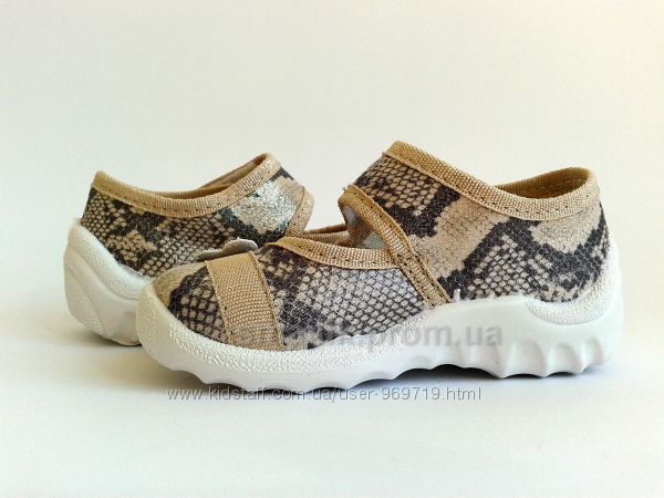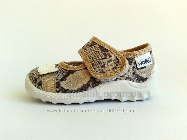 Тапочки от ТМ Waldi с имитацией змеиной кожи - это качественная и комфортная обувь для Вашей малышки. Они произведены из натурального плотного текстиля, который не парит ногу и отлично зарекомендовал себя в процессе носки. Стелька кожаная ортопедическая на антибактериальной пене. Жесткий задник и гибкая облегченная подошва из ПВХ (абсолютно без запаха) способствуют комфорту во время активных игр и прогулок. Тапочки оснащены липучкой, что существенно облегчает самостоятельное обувание. Данная модель тапочек будет отлично сочетаться как с домашней одеждой, так и с джинсами, шортами и платьями. Носить эти тапочки можно не только дома или как сменную обувь в садике. но и на прогулках.Замеры стельки: