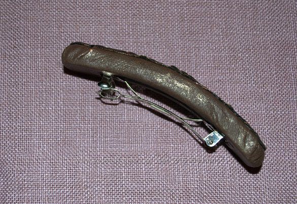 -Фото 3,4 - Универсальная по цвету и форме заколка-автомат выполнена из натуральной кожи приятного коричневого оттенка,оттенённая золотистой краской.